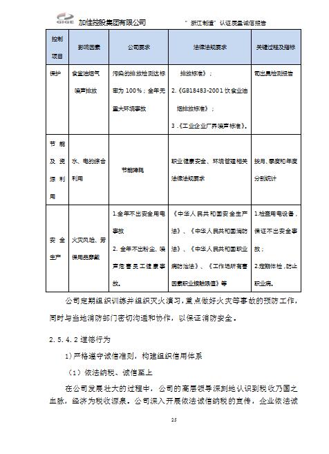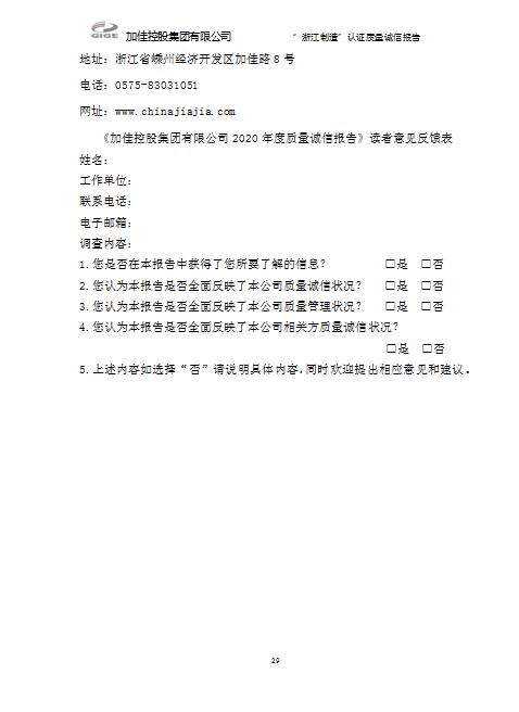 加佳控股集团有限公司2020年“浙江制造”认证质量诚信报告