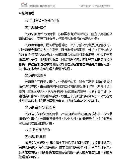 加佳控股集团有限公司2020年“浙江制造”认证社会责任报告